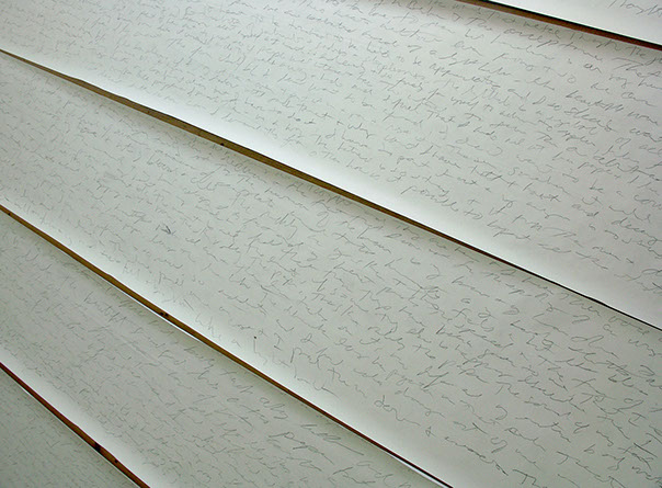 In Berlin, one of my artistic goals was to explore the formal and experiential nature of handwriting, as well as storytelling. Through my efforts, a series of very personal “sculptural stories” emerged that came directly from my own personal memories.