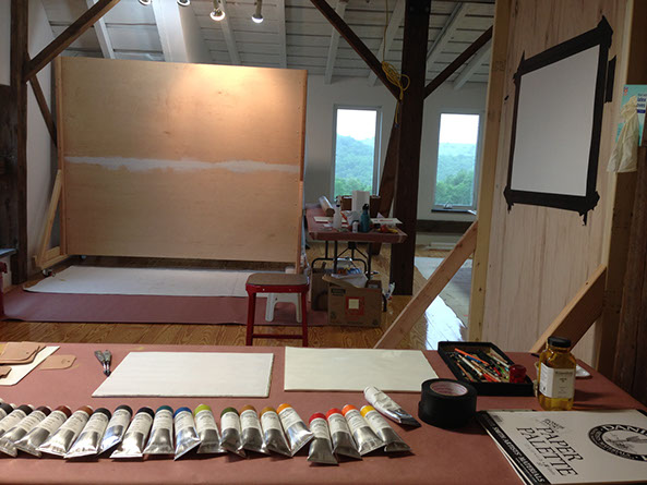 In June 2013, I was the lucky recipient of a month-long residency at the Sam & Adele Golden Foundation Residency. While in residence, we were offered technical instruction in the use of acrylics, oils, varnishing, faux tools and applications, and image transfer techniques. In addition to the technical support, we were given access to all the products offered by Golden Artist Colors, including Williamsburg Handmade Oil Colors.