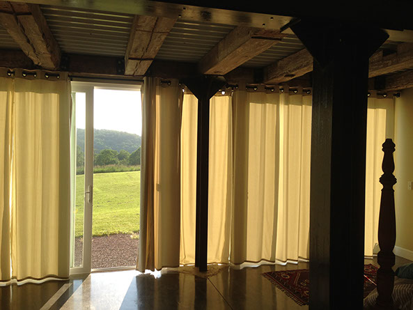 The residency barn from across the field. Studios are on the top two floors. The individual living quarters and the kitchen/common area are all on the first floor.