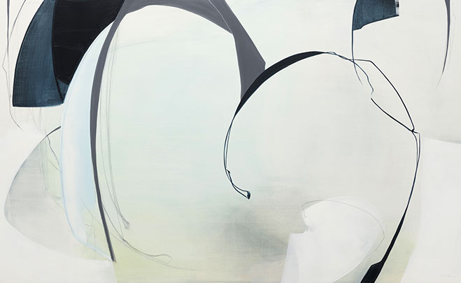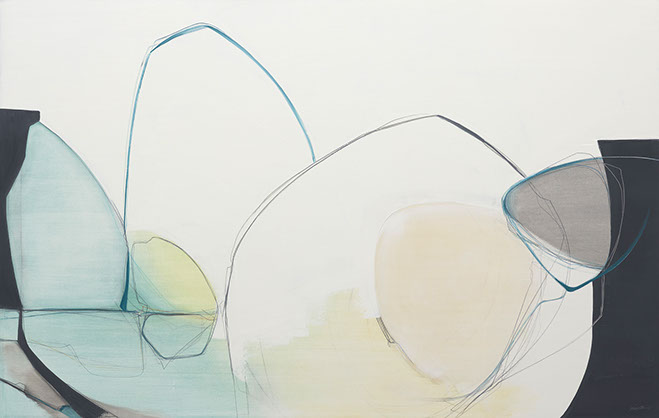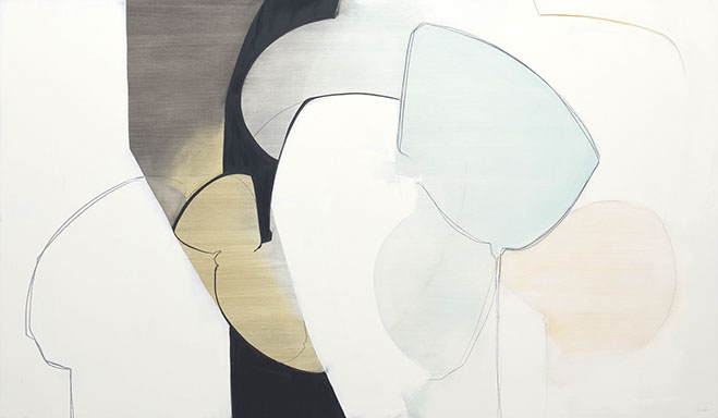 Into Contact, 28 x 44 inches, oil and graphite on panel, 2020