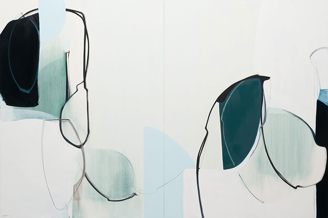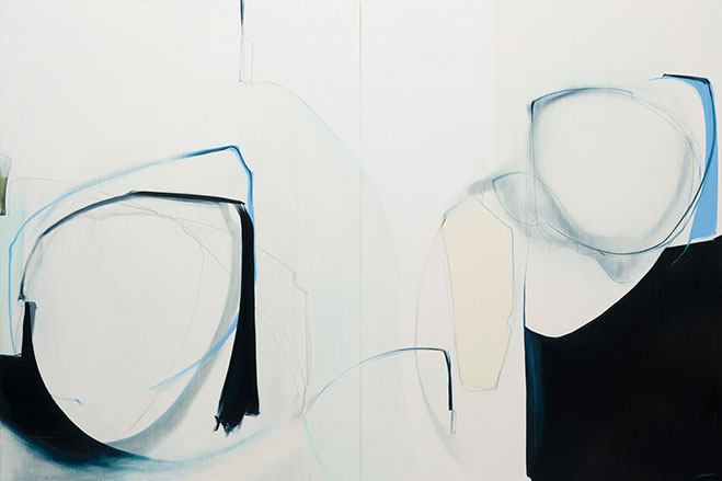 Meandering, 48 x 72 inches, diptych, oil and graphite on panel, 2021