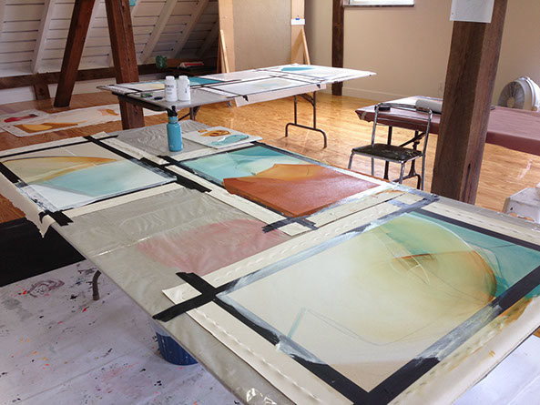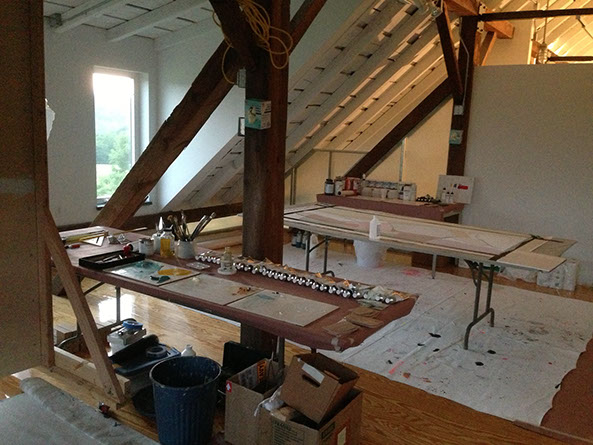 In June 2013, I was the lucky recipient of a month-long residency at the Sam & Adele Golden Foundation Residency. While in residence, we were offered technical instruction in the use of acrylics, oils, varnishing, faux tools and applications, and image transfer techniques. In addition to the technical support, we were given access to all the products offered by Golden Artist Colors, including Williamsburg Handmade Oil Colors.