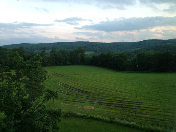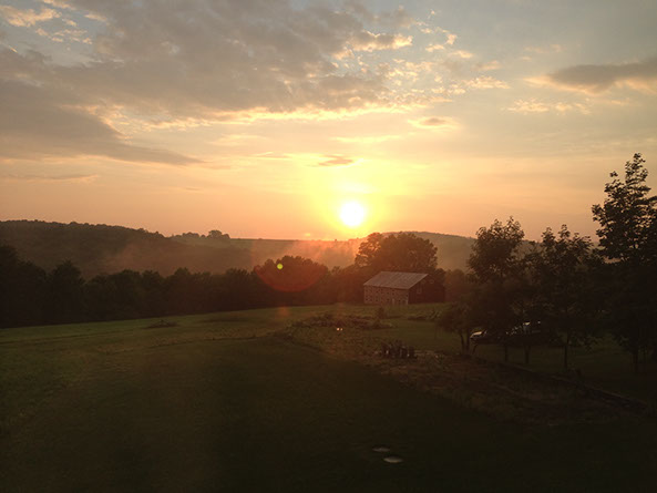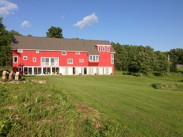 The residency barn from across the field. Studios are on the top two floors. The individual living quarters and the kitchen/common area are all on the first floor.