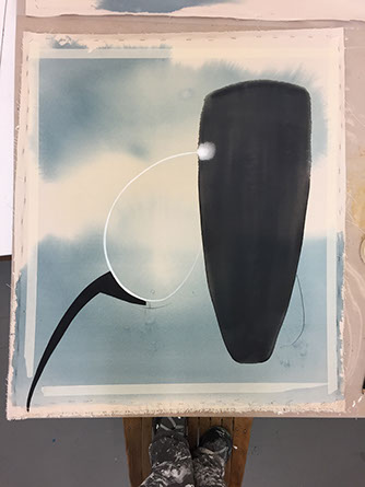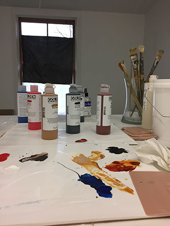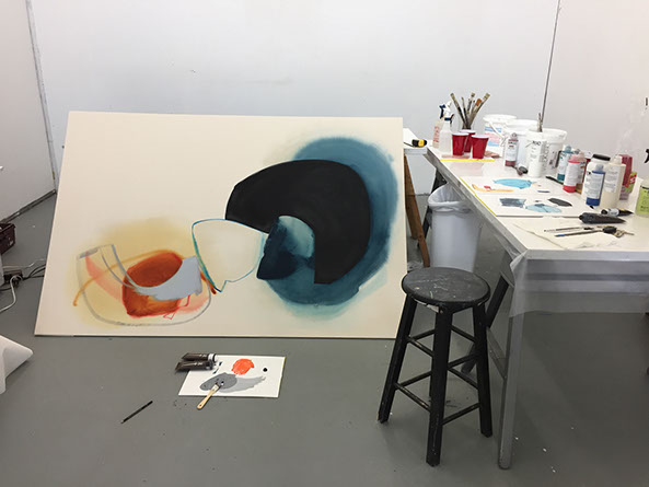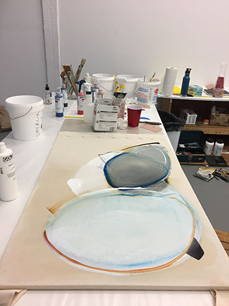 Since my residency in 2013 at the Golden Foundation, I’ve wanted to continue my explorations in acrylics, but space/time has always limited me so I’ve had to leave my acrylics packed up for 4 years. Now, I have a larger studio in Vermont, a week to play with acrylics and nothing holding me back…except that I’m an oil painter at heart and these are nothing like oil paints!
