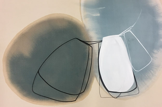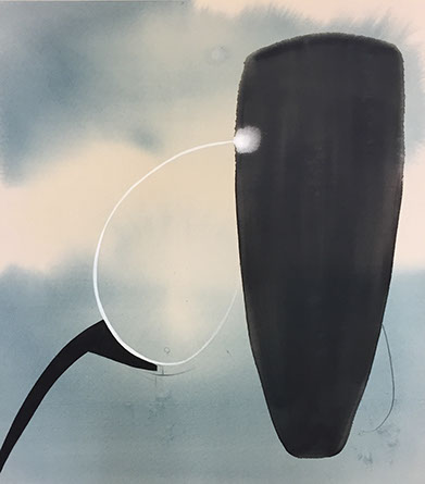 One of my aesthetic goals has been to channel Motherwell’s strong independent forms that dominate the canvas without a lot of detail; they are so powerful and simple. Well, this just started to happen on my stained canvases, I saw the forms and lines emerge and they held strong to their simplicity and I had the good sense to stop and let them be, which a lot of artists will say is the hardest thing to do…and it was hard.
