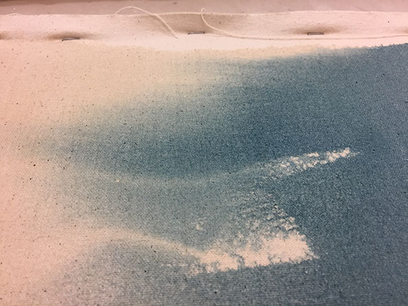 Why acrylics? I finally landed on acrylics because I love fabric. I wanted to work on raw fabric in a manner that blended my watercolor and oil styles…that was my initial goal before diving head-on into my residency.
