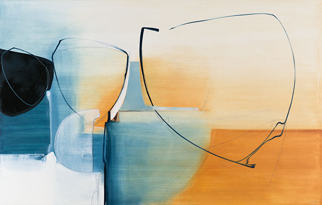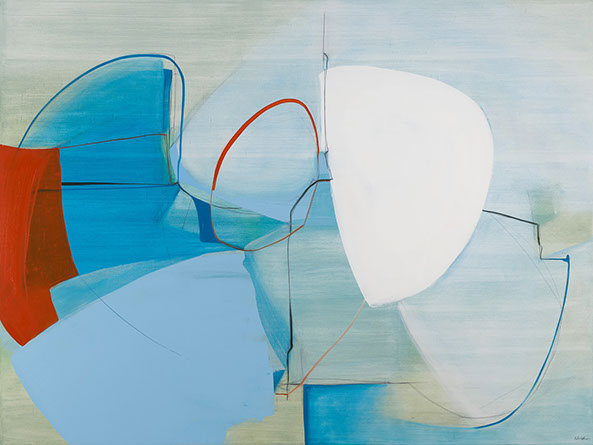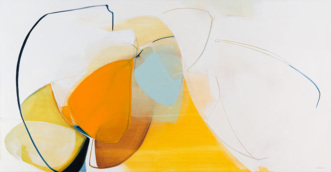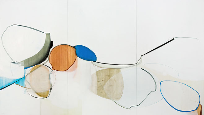 Orange and Blue Sending Out, 48 x 84 inches, triptych, oil and graphite on panel, 2017