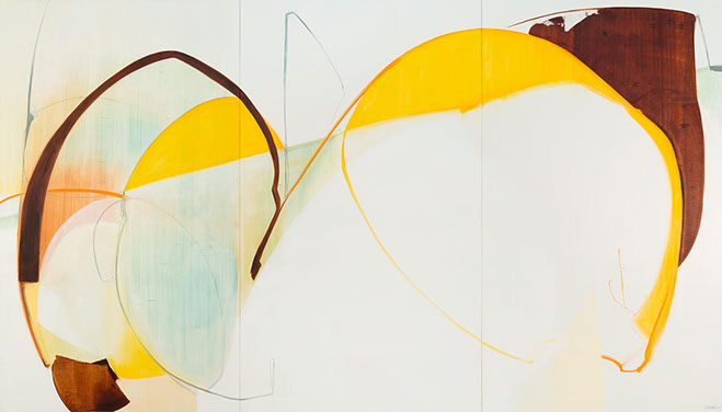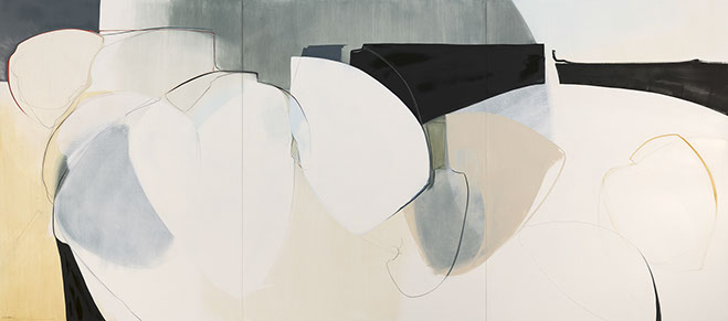 Pulled Together, 48 x 108 inches, triptych, oil and graphite on panel, 2018