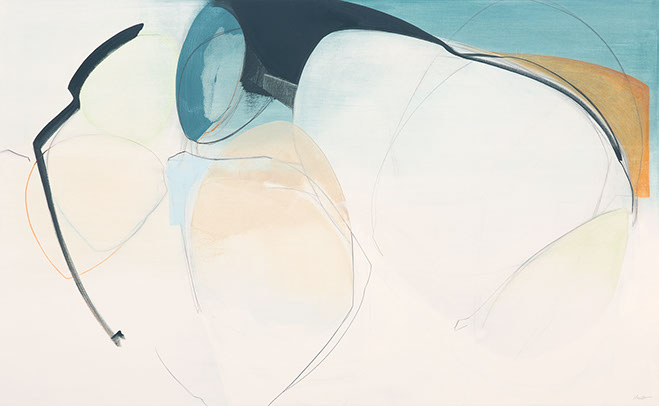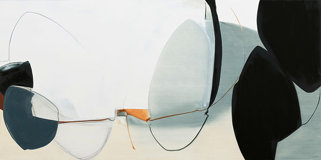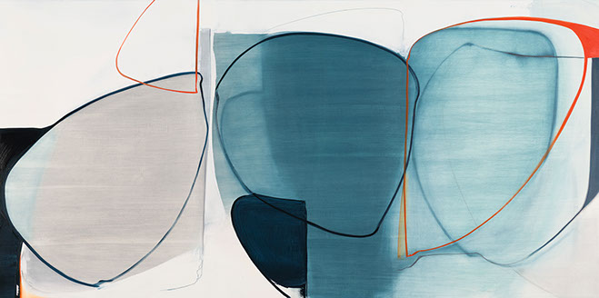 Edging In, 24.5 x 48.5 inches, oil and graphite on panel, 2018