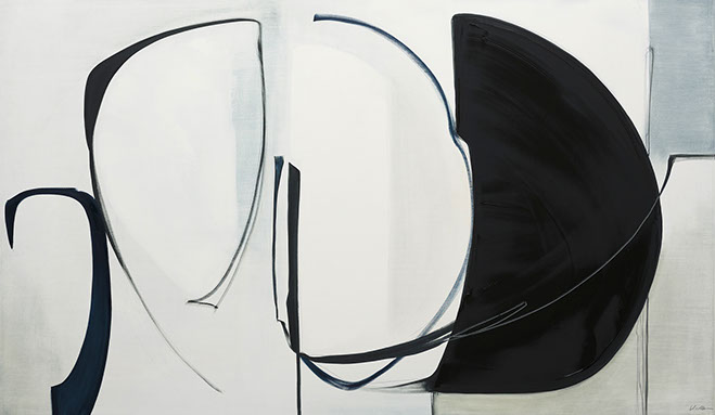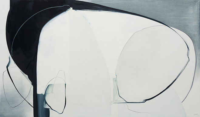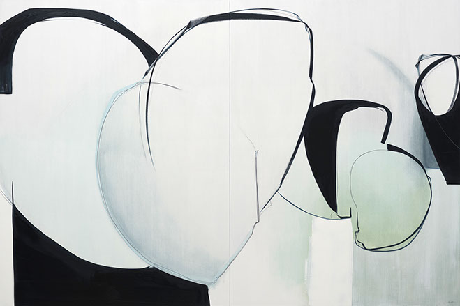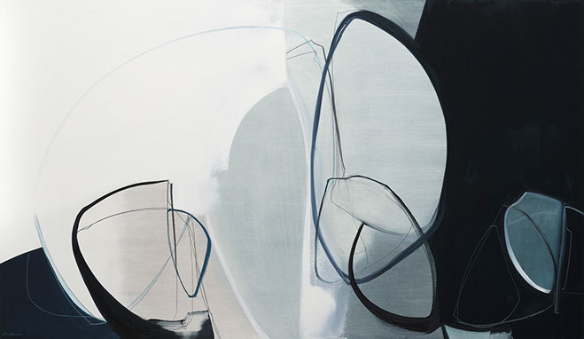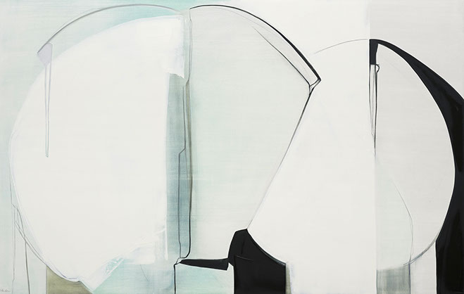 Into Contact, 28 x 44 inches, oil and graphite on panel, 2020