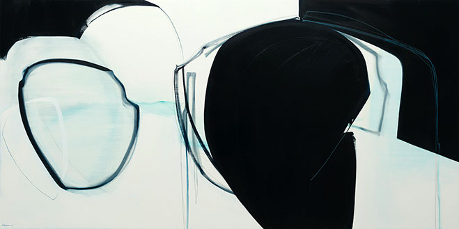 Balance, 36 x 48 inches, oil and graphite on panel, 2021