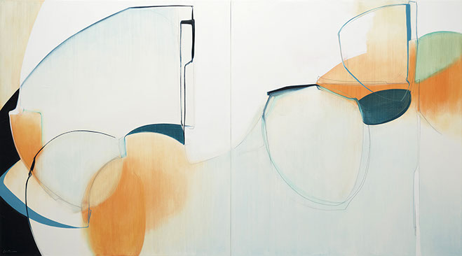Meandering, 48 x 72 inches, diptych, oil and graphite on panel, 2021
