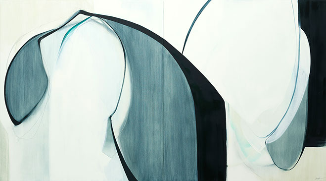 Move And Flow, 28 x 48 inches, oil and graphite on panel, 2022