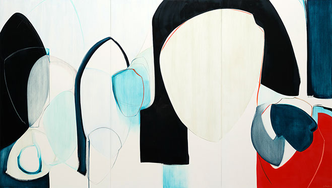 In Tandem, 28 x 48 inches, oil and graphite on panel, 2022