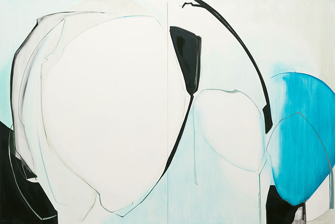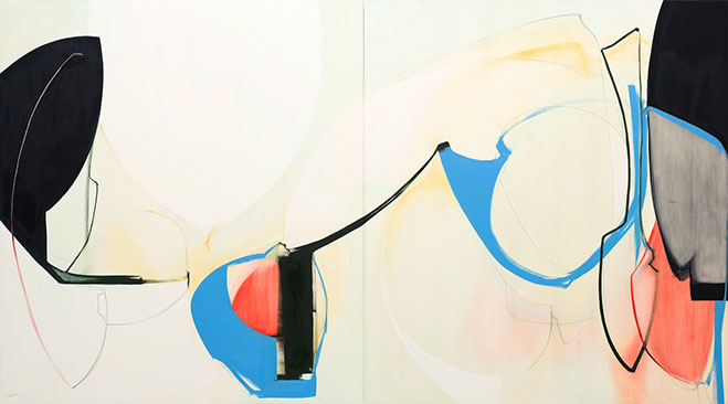 Fold Into, 40 x 72 inches, diptych, oil and graphite on panel, 2022