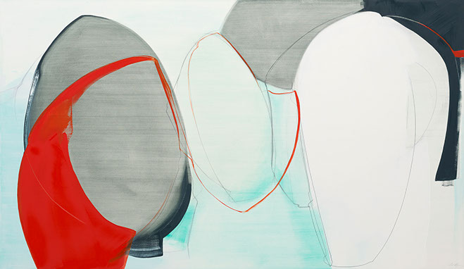 Red Three, 28 x 48 inches, oil and graphite on panel, 2022